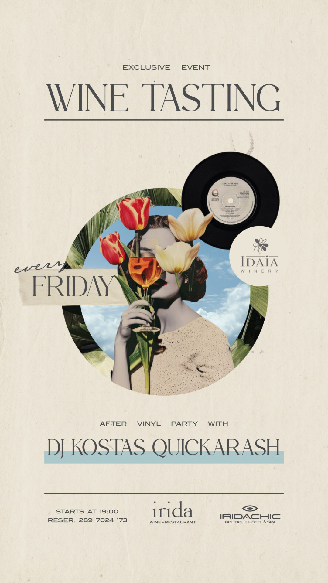 As the sun sets, the mood shifts into a vinyl-only afterparty with resident DJ Kostas Quickarash, spinning eclectic sounds deep into the night.