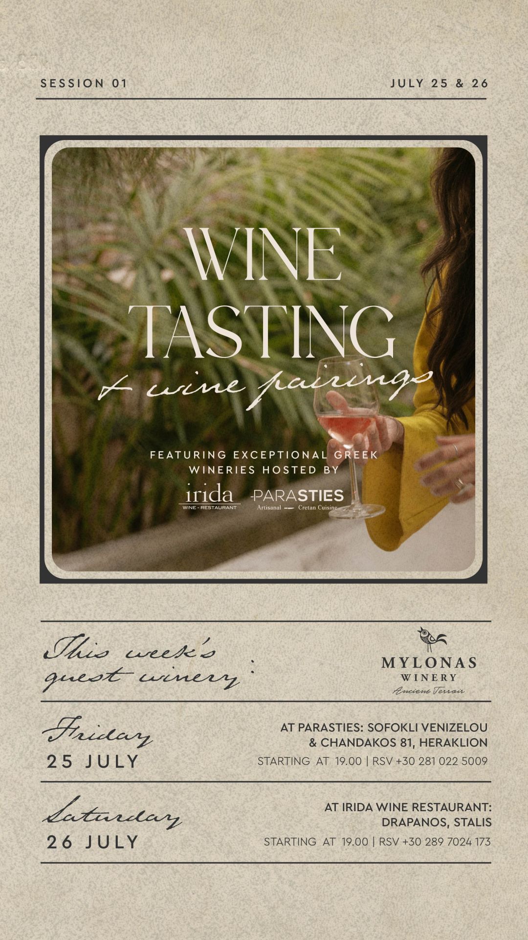 Join us for a curated series of signature weekly events at Irida Wine Restaurant, where fine wine, exceptional music, and immersive experiences come together under the Cretan sky. Each night offers a different flavor of celebration—perfectly paired with our culinary philosophy of local tradition and modern flair.